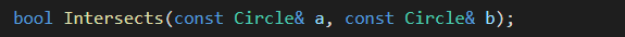 判定するIntersects関数が、2つのCircleオブジェクトを受け取ると考えよう。