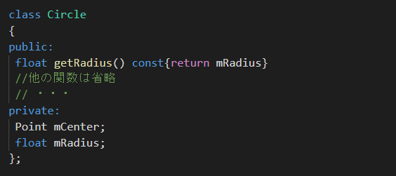 例えばCircleのGetRadius関数は、メンバーデータを書き換えるべきではないから、